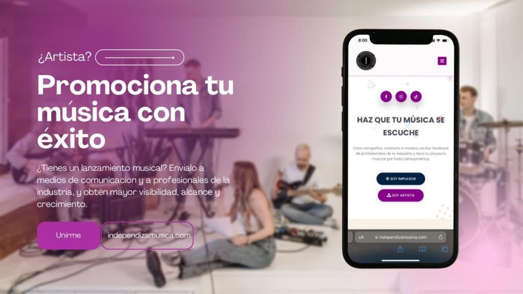 ¿Estás en busca de tener más alcance con tu música?, entonces nos complace presentarte a “Independiza Música”, una plataforma digital conformada por profesionales y apasionados de la industria musical que harán llegar tus composiciones a un nuevo público que está deseoso de escuchar tus temas, recuerda, con la ayuda de “IM” podrás conectar tus creaciones con medios especializados de todo Latinoamérica para su correcta difusión y que lleguen a los oídos indicados que gozarán de tu música. Es por eso que debes darte la oportunidad de probar esta nueva plataforma que tiene el anhelo de hacer crecer tú arte, ya que promueven a los artistas emergentes que tienen el afán de compartir sus sonidos sin importar las fronteras.